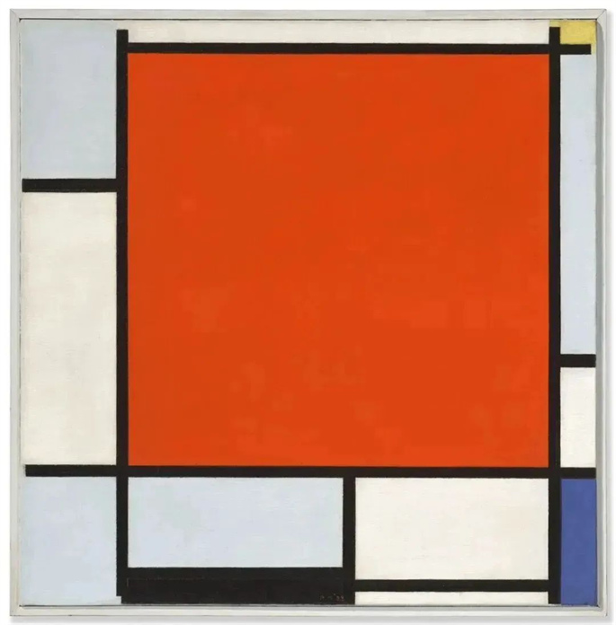8. 彼埃·蒙德里安《构成:大红色平面、蓝灰色、黄色、黑色和蓝色》