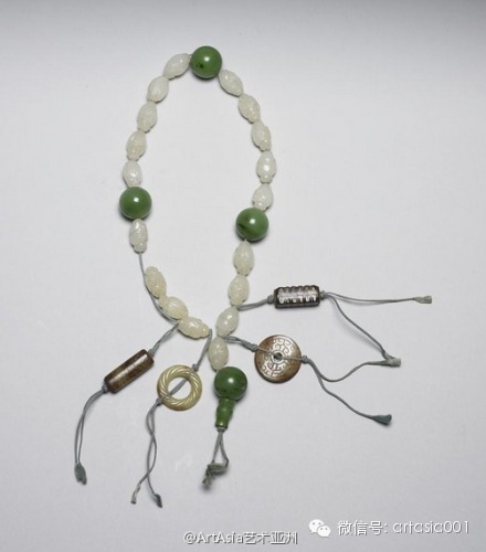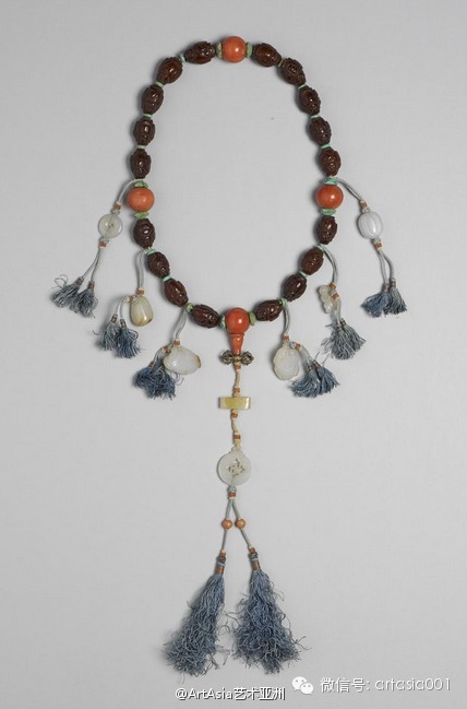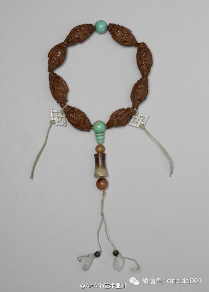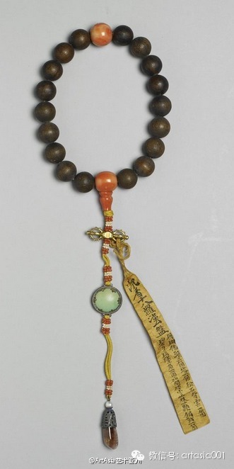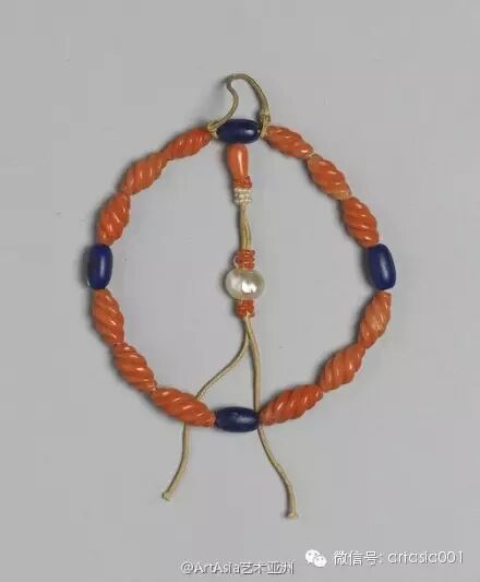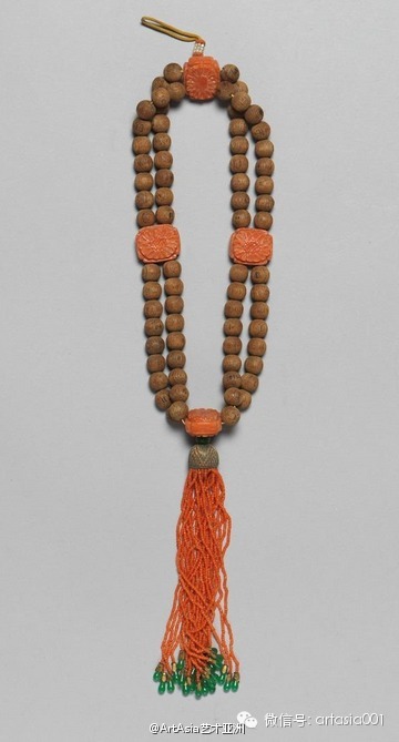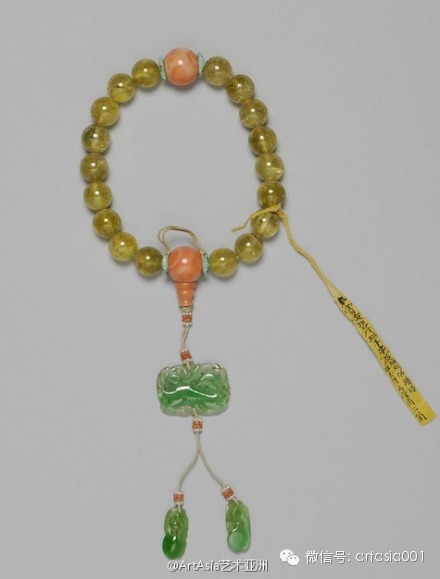 台北故宫博物院藏清宫各式手串-手串是清代后宫嫔妃日常生活的装饰品,可挽在手腕上或拿在手中,也可挂在便服衣襟的钮扣上,用十八颗圆珠串成,故称“十八子手串”,或称念珠,亦称佛珠,数珠。还有二十七颗,五十四颗,一百零八颗为一串者,均为诵经念咒是计数之用。